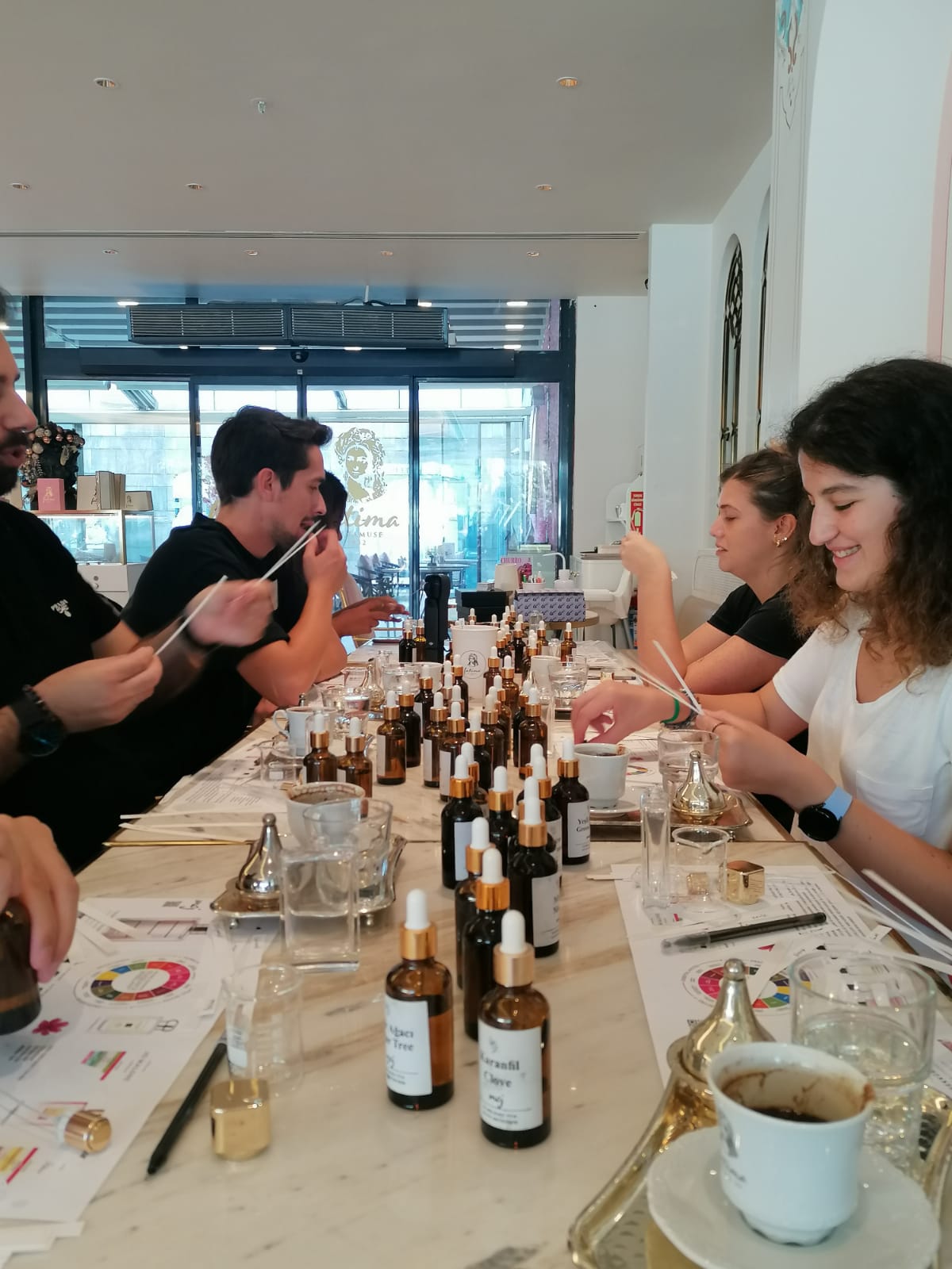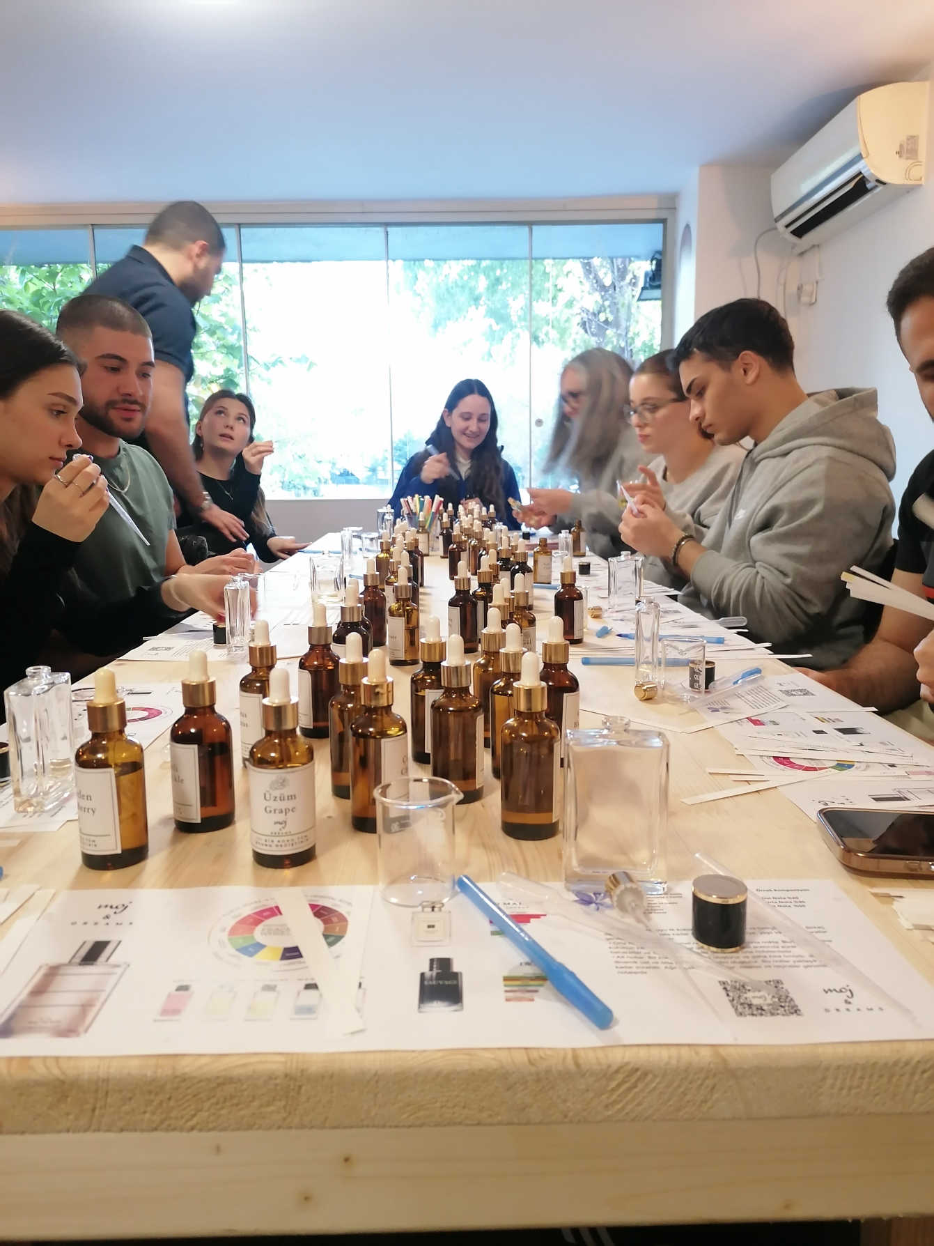 Eğitmenlerimiz, parfüm tasarımını bir bilim ve sanat formu olarak ele alarak yerel ve uluslararası katılımcılarla çalışmaktadır. Koku dünyasına duydukları derin ilgiyle, katılımcılara kendi hikayelerini yansıtan özgün parfümler tasarlamayı deneyimlemelerini sağlıyorlar . Amacımız, koku tasarım sürecini keyifli, yaratıcı ve unutulmaz bir deneyime dönüştürmektir.